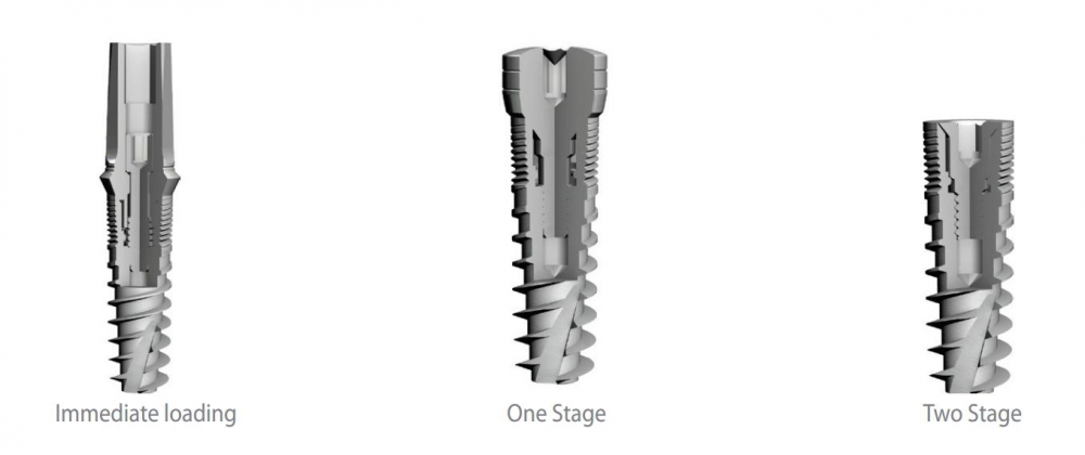Применяется во всех видах кости. Наилучшие результаты в кости 2,3 и 4 типа. Зоны имплантатции – все отделы верхней и нижней челюсти. Комплект позволяет в зависимости от клинической ситуации произвести двухэтапную (классическую) имплантацию или одноэтапную имплантацию или имплантацию с немедленной функциональной нагрузкой на имплантат.