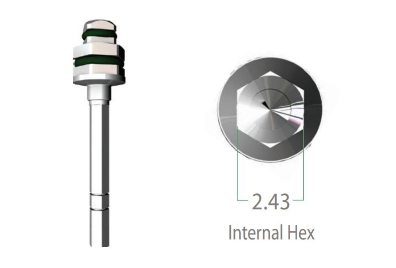 Шестигранный ключ 2.5ммд для углового наконечника. Используется для закручивания и раскручивания имплантата с внутренним шестигранником 2.43ммд в челюстную кость на хирургическом этапе. Используется вместе с физиодиспенсором и присоединяется к угловому редукторному наконечнику. Грани на рабочей части ключа позволяют визуально контролировать позицию шестигранника имплантата.